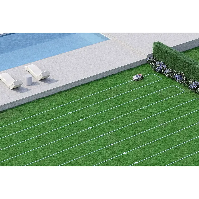 Darüber hinaus ermöglicht die EdgeMaster™-Technologie dem A2 eine gründlichere Bearbeitung von Rasenkanten. Dank dieser Technologie lässt sich die Klingenscheibe des A2 ausfahren, sodass der Mähroboter direkt an der Kante schneiden kann, wobei der Abstand zwischen Scheibe und Kante weniger als 5 cm* beträgt. So kann ein gründliches Mähen und eine maximale Mähbereichsabdeckung gewährleistet werden.