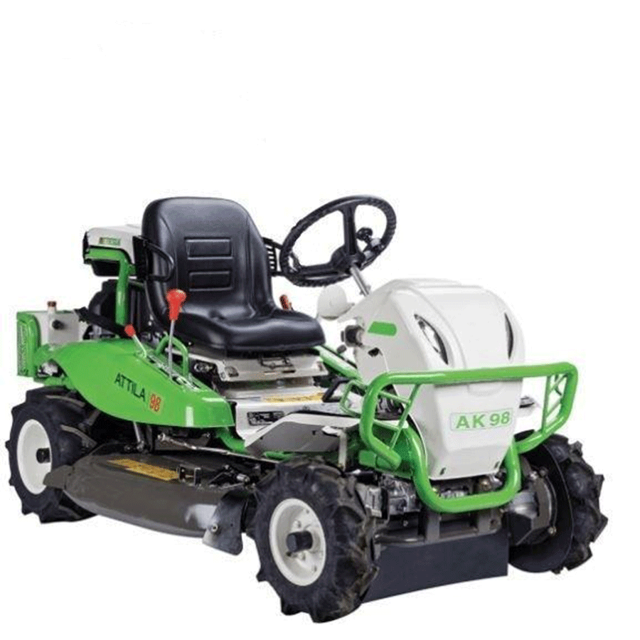 Mit seinen pendelnden oder feststehenden Messern verfügt der Attila 98 über eine Schnittbreite von 98 cm. Mit einem Federstahlbalken und Pendelmesser ausgestattet, kann der Mann beim Mähen von Gras zur Erreichung eines besseren Schnittbildes feststellen.