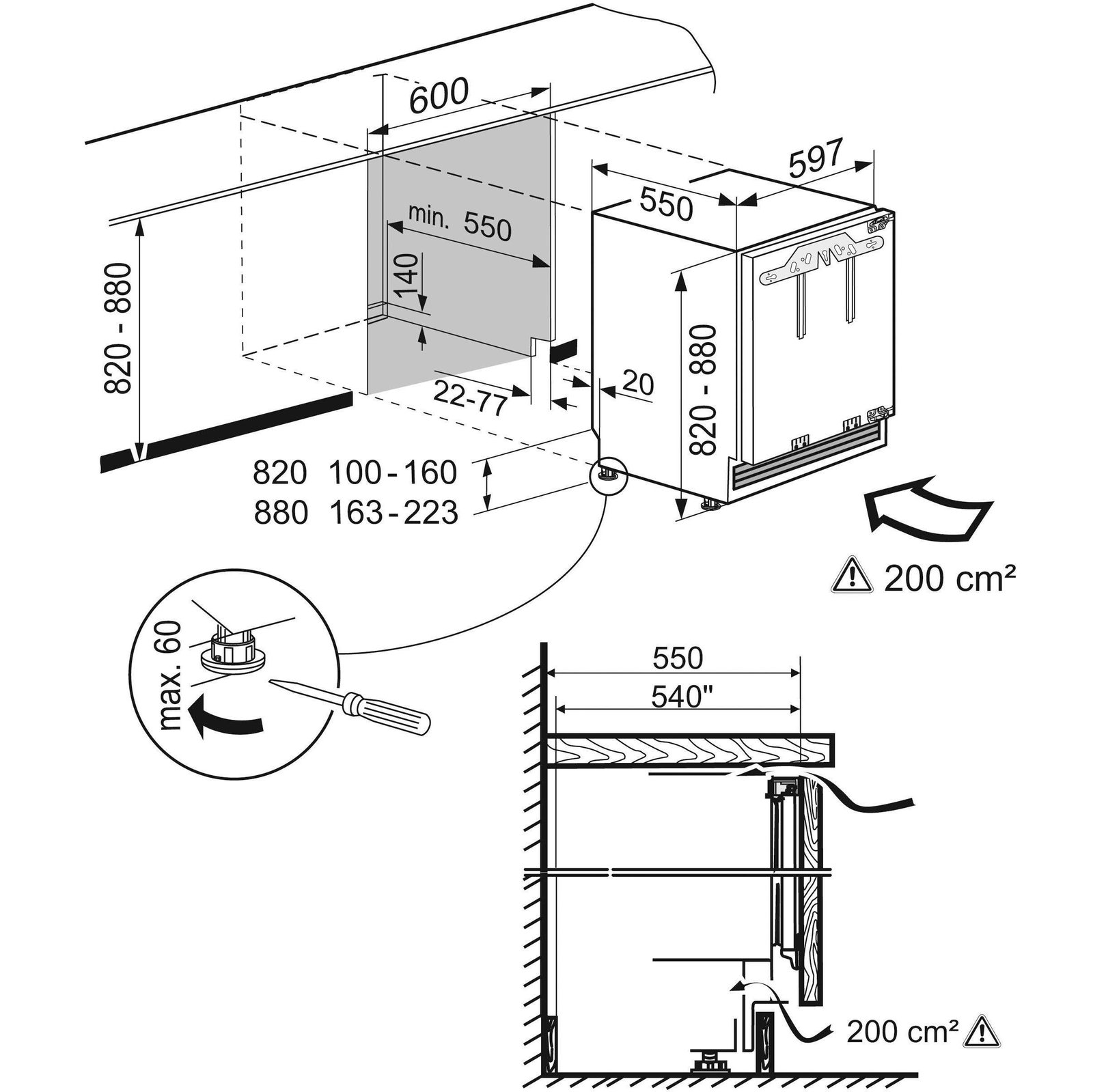 Höhe Nische minimal : 82 cm