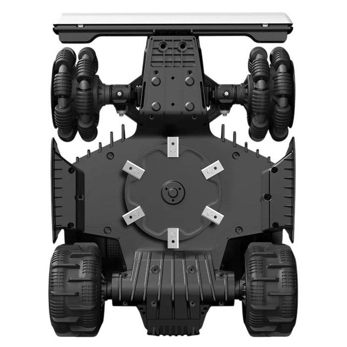 Ausgestattet mit Omni-Rädern erleichtert das Nullwendungslenksystem den Arbeitsablauf, maximiert die Effizienz bei Mähaufgaben und sorgt letztendlich für ein sorgfältig gepflegtes Erscheinungsbild des Gartens.
