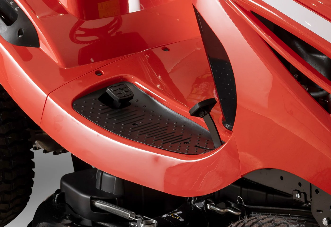 | Die serienmäßig im Lieferumfang enthaltene robuste Stoßstange schützt verlässlich die Motorhaube des Rasentraktors | |