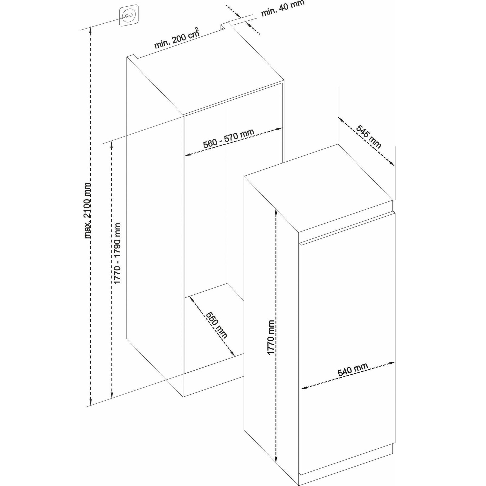 Höhe Nische maximal : 179 cm